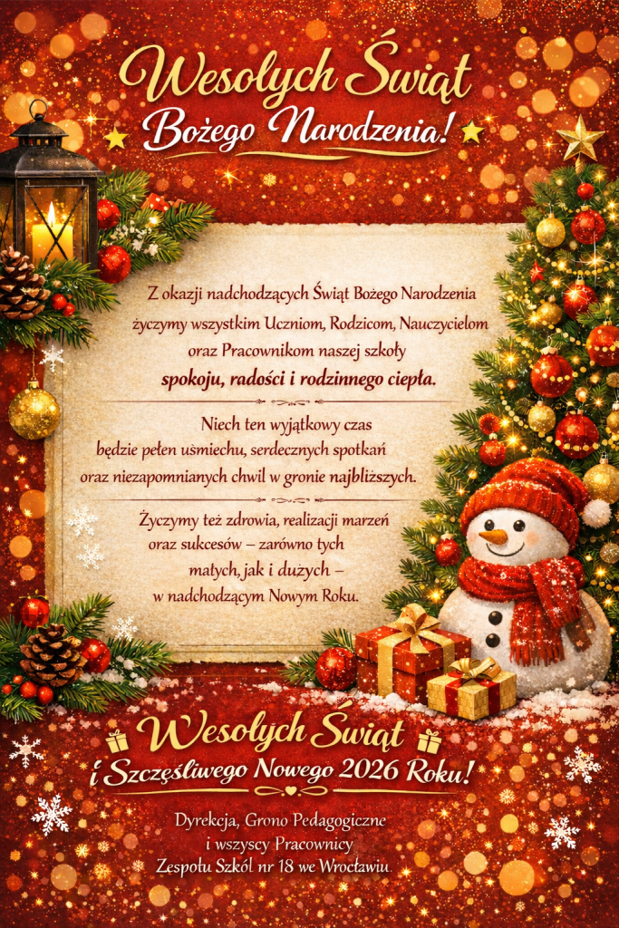 4 grudnia 2025 r. (CZWARTEK) o godzinie 16:30 odbędą się zebrania dla rodziców wszystkich klas oraz konsultacje wszystkich nauczycieli.