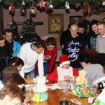 Uczniowie postanowili przeznaczyć te pieniądze na paczki dla potrzebujących. Pomógł im wychowawca, pomogli też nauczyciele, przynosząc zabawki, bajki oraz odzież dla dzieci samotnych mam. W schronisku dzieci w prawdzie nie było, bo nie wróciły jeszcze ze szkoły, ale… na św. Mikołaja czekał z niecierpliwością mały Jaś, który od razu pokochał wieeelką żabę! Św. Mikołaj przyniósł też swój wizerunek do kolorowania. Panie pozazdrościły Jasiowi i ochoczo wzięły się do kolorowania wizerunku św. Mikołaja!