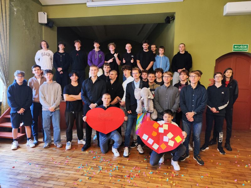 W ramach niespodzianki wręczyliśmy Wiktorowi dwa symboliczne serca. Na jednym z nich swoje podpisy złożyli dyrekcja, nauczyciele oraz wszyscy uczniowie szkoły, a na drugim – członkowie Samorządu Uczniowskiego oraz koledzy z klasy.