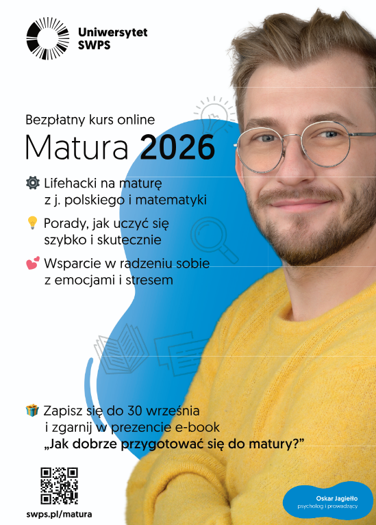 Zapraszamy uczniów do szóstej edycji Kursu Matura, organizowanego przez Uniwersytet SWPS z myślą o wszystkich maturzystkach i maturzystach.