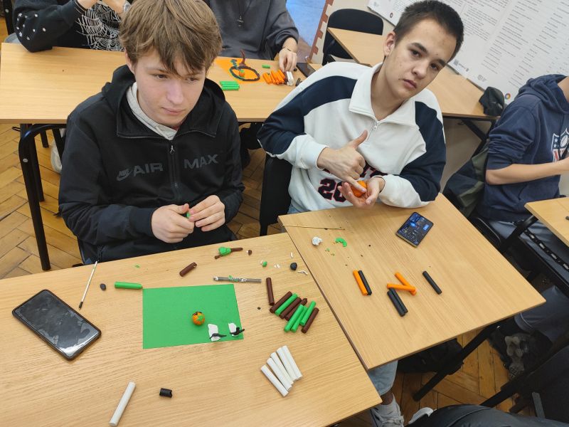 Do rywalizacji zgłosiły się dwuosobowe reprezentacje wszystkich klas, które z ogromnym zapałem przystąpiły do pracy. Zadaniem uczestników było wykonanie halloweenowego ogrodu – pełnego tajemniczej, mrocznej atmosfery i oryginalnych ozdób z plasteliny. Na stołach szybko pojawiły się miniaturowe dynie o przerażających minach, nietoperze zawieszone na cieniutkich nitkach, kolorowe pajęczyny oraz fantazyjne duchy i potworki.