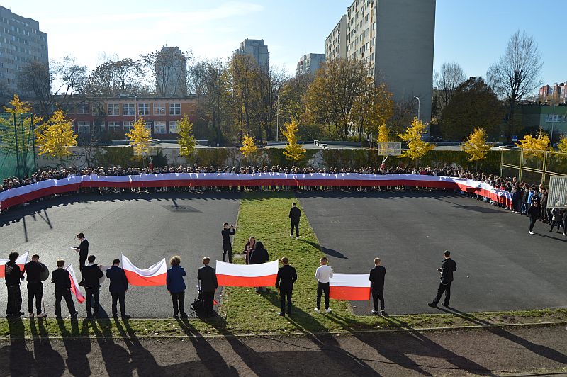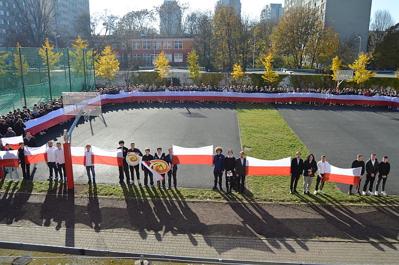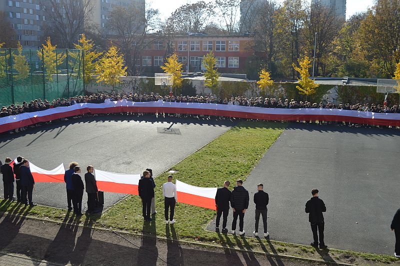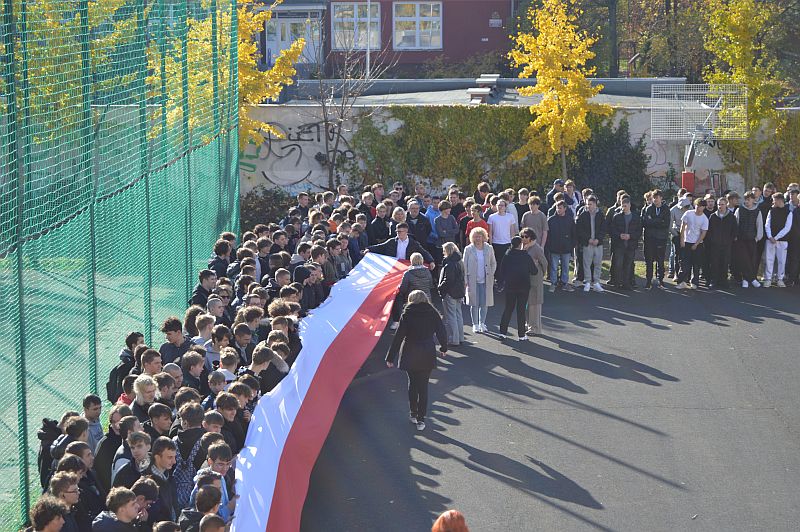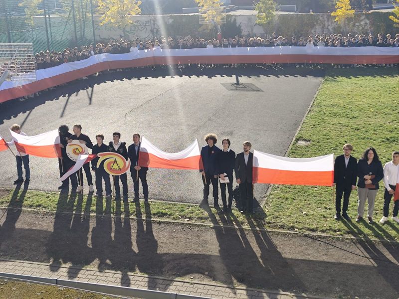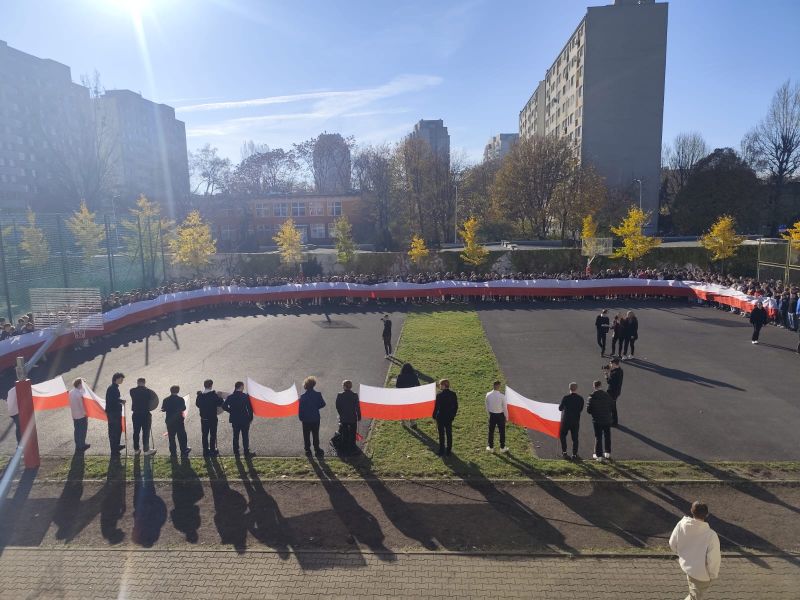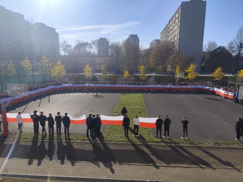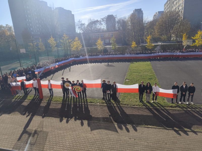 7 listopada 2025 roku nasza szkoła wzięła udział w kolejnej edycji ogólnopolskiej akcji „Szkoła do hymnu”, zorganizowanej przez Ministerstwo Edukacji Narodowej. Punktualnie o symbolicznej godzinie 11:11 wszystkie klasy zebrały się na boisku szkolnym, aby wspólnie odśpiewać „Mazurka Dąbrowskiego”.