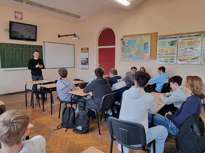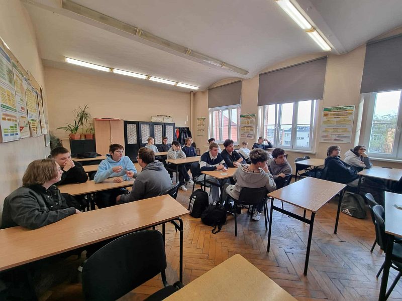 Uczniowie klas: I TEC, II TM i II TE w formie rywalizacji odpowiadali na pytania dotyczące cyberbezpieczeństwa, oszustw finansowych i bezpiecznych zachowań w sieci — angażująca formuła pomogła utrwalić wiedzę i rozwijać krytyczne myślenie.