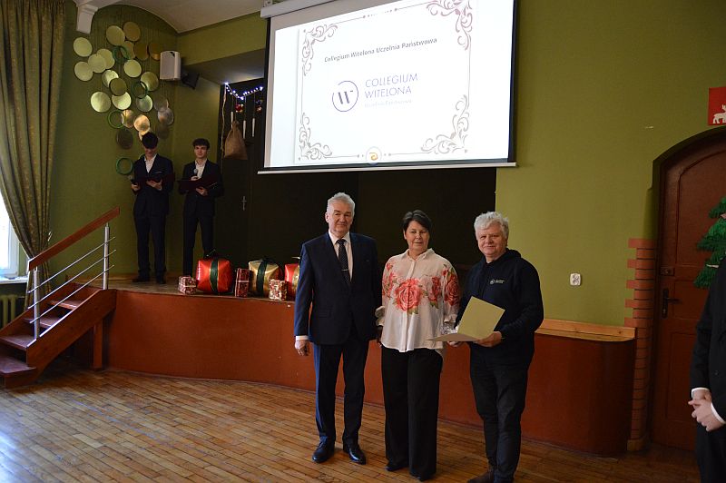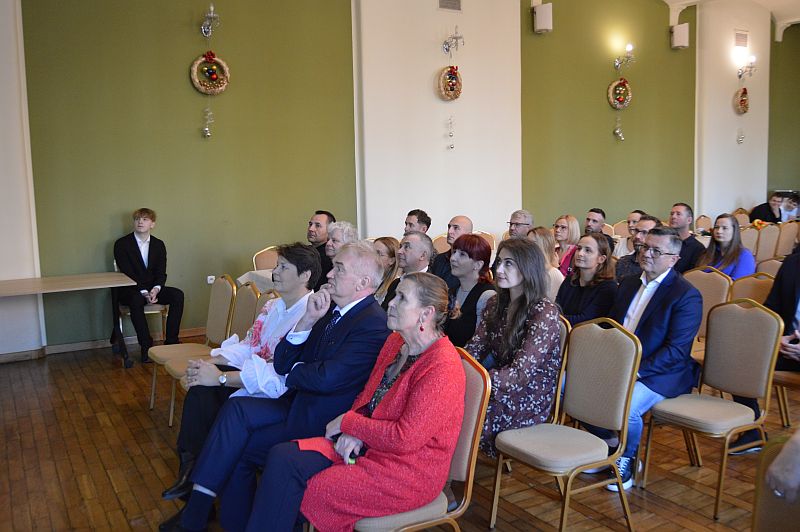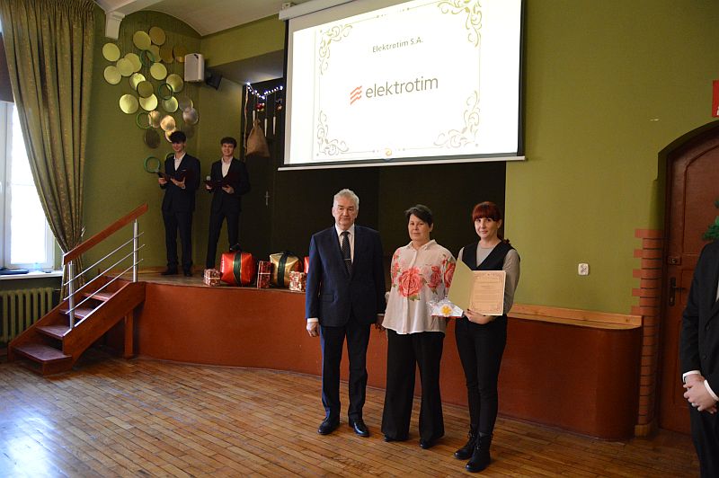 Korzystając z tak licznej obecności szacownych gości dyrektor szkoły, Pan Piotr Lusar, wręczył dyplom potwierdzający otrzymanie Stypendium Prezesa Rady Ministrów uczniowi, który otrzymał w roku szkolnym 2024/2025 najwyższe noty w szkole – Szymonowi Kluzowiczowi z klasy IV TEA.