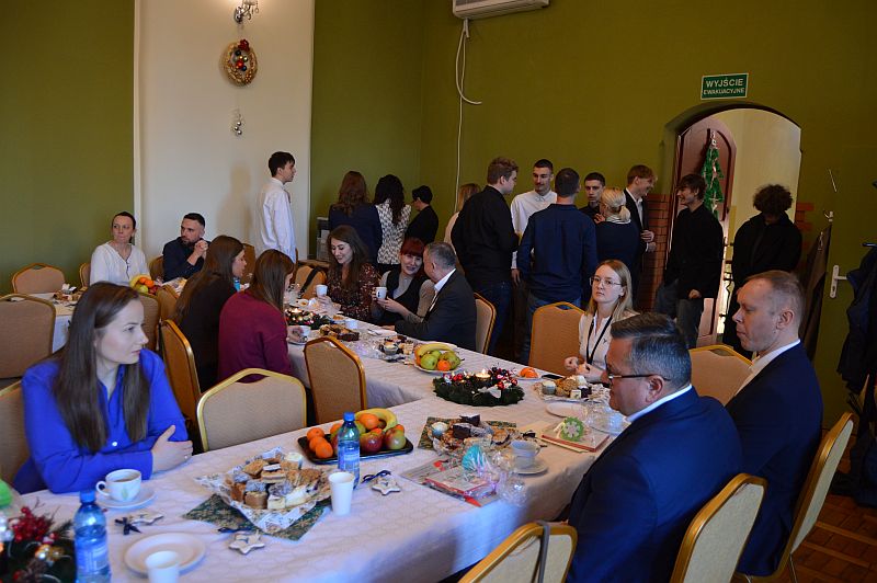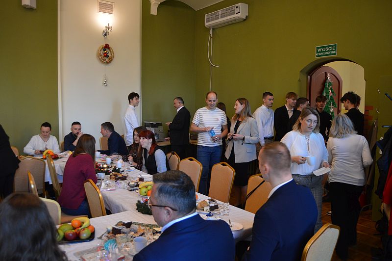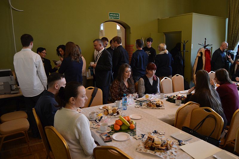 Spotkanie zamknęła nieformalna część przy kawie i ciastku. Była to chwila na niezobowiązujące rozmowy między przedstawicielami firm, ale też pracownikami szkoły. W świątecznej atmosferze rozmawiano o tym, co już się wydarzyło, ale także pojawiały się wstępne pomysły na nowy okres współpracy.