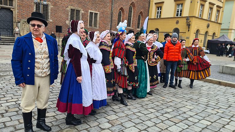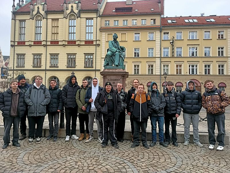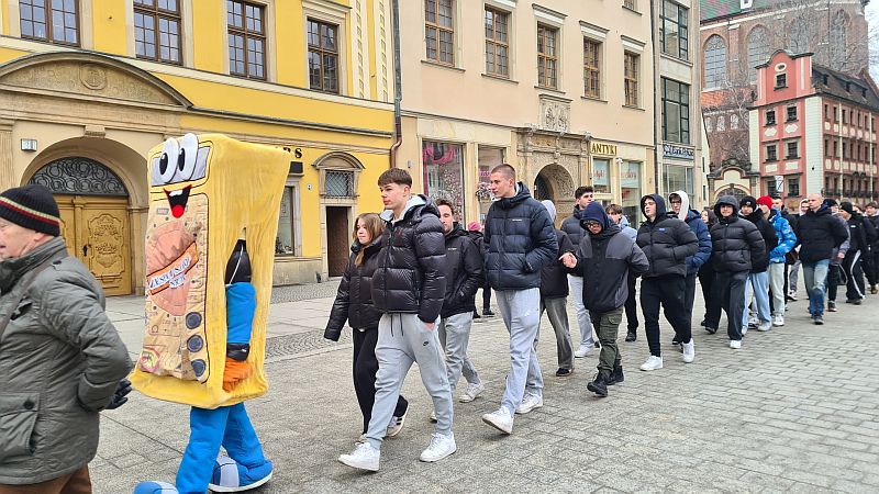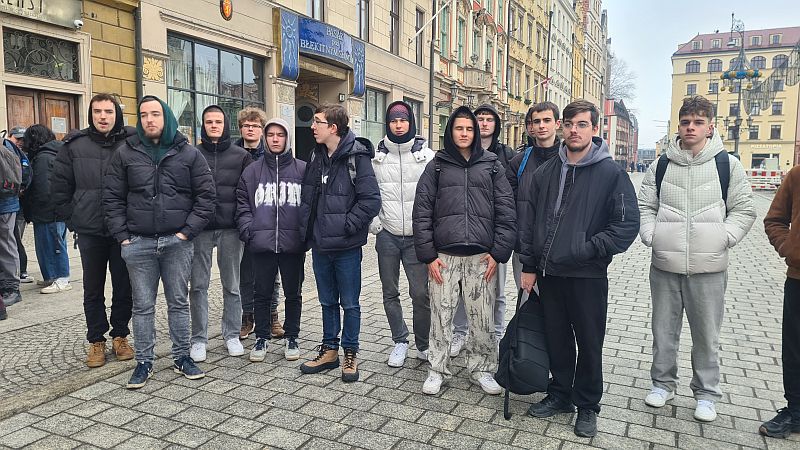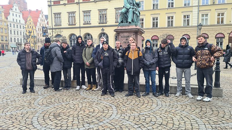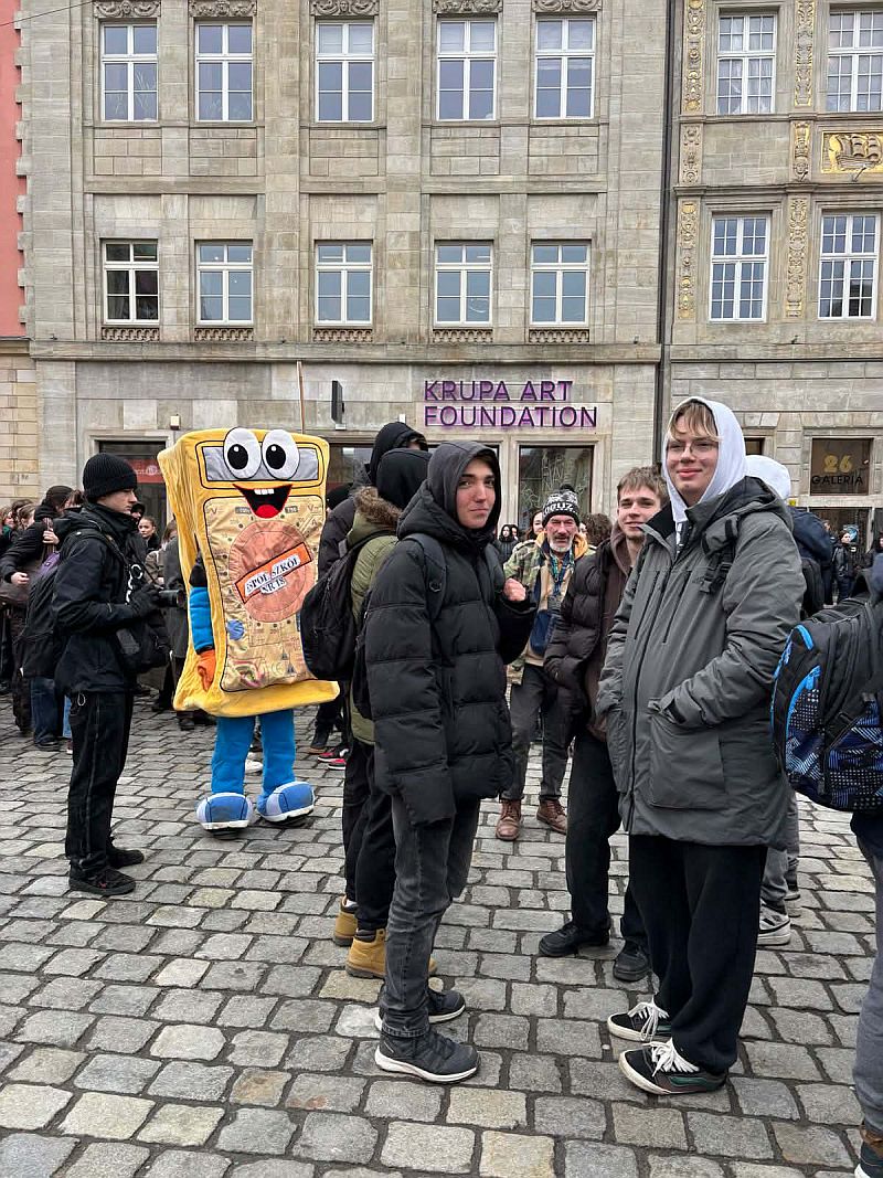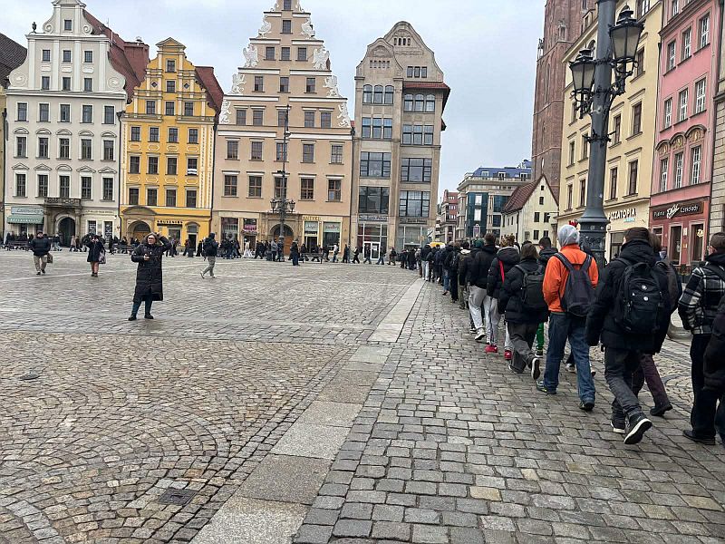 Wczoraj, 28 stycznia 2026 r., uczniowie klas maturalnych naszej szkoły wzięli udział w niezwykłym wydarzeniu na wrocławskim Rynku. Zgodnie z wieloletnią tradycją, punktualnie o godzinie 12:00, maturzyści z całego Wrocławia zgromadzili się pod pręgierzem, by wspólnie zatańczyć poloneza dla Fredry.