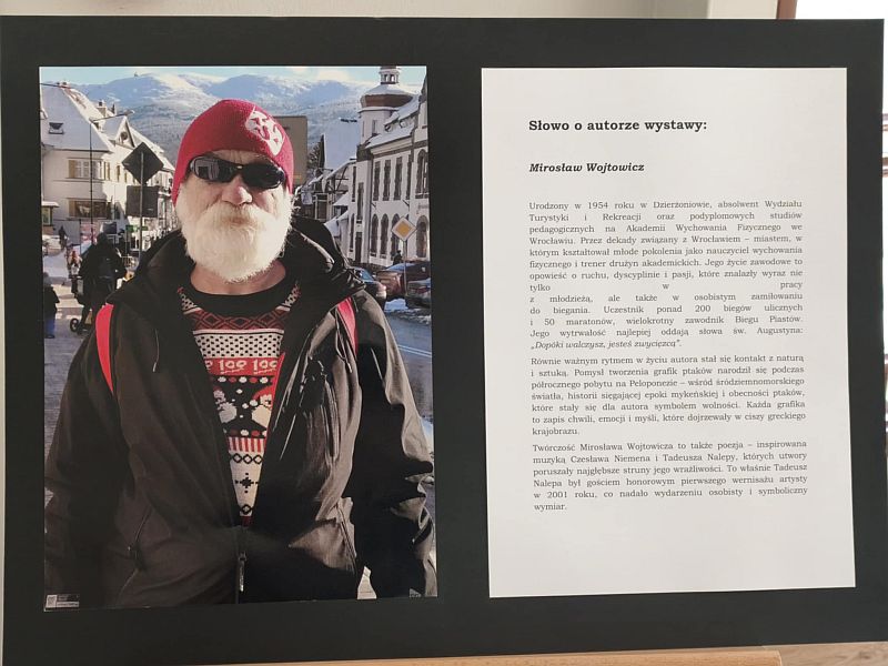 Ekspozycja przedstawia grafiki inspirowane naturą, zwłaszcza motywem ptaków, symbolizujących wolność, lekkość i ruch. Prace łączą wrażliwość artystyczną z osobistymi doświadczeniami autora, tworząc wyjątkową i refleksyjną opowieść.