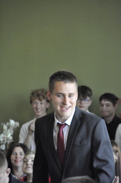 W imieniu maturzystów głos zabrał przedstawiciel uczniów, dziękując nauczycielom i wychowawcom za trud, cierpliwość oraz przekazaną wiedzę i wartości.